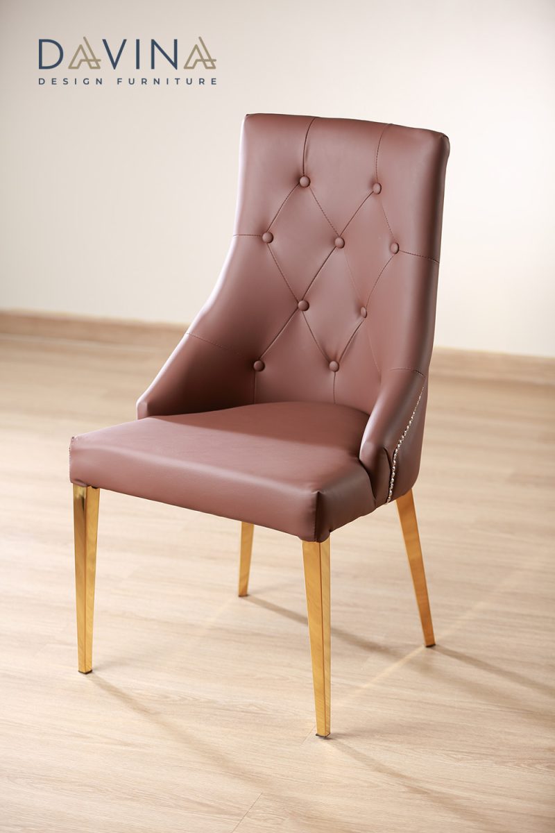 ຕັ່ງກິນເຂົ້າດີໄຊນ໌ທີໂດດເດັ່ນດ້ວຍການປັກດຸມໄດມ້ອນໃຫ້ຄວາມຫຼູຫຼາໂດດເດັ່ນດ້ວຍອາໄຫຼ່ສີທອງທີ່ມີຄວາມເງົາງາມ ເຂົ້າກັບໂຕະກິນເຂົ້າໜ້າຫີນອ່ອນໄດ້ເປັນຢ່າງດີ