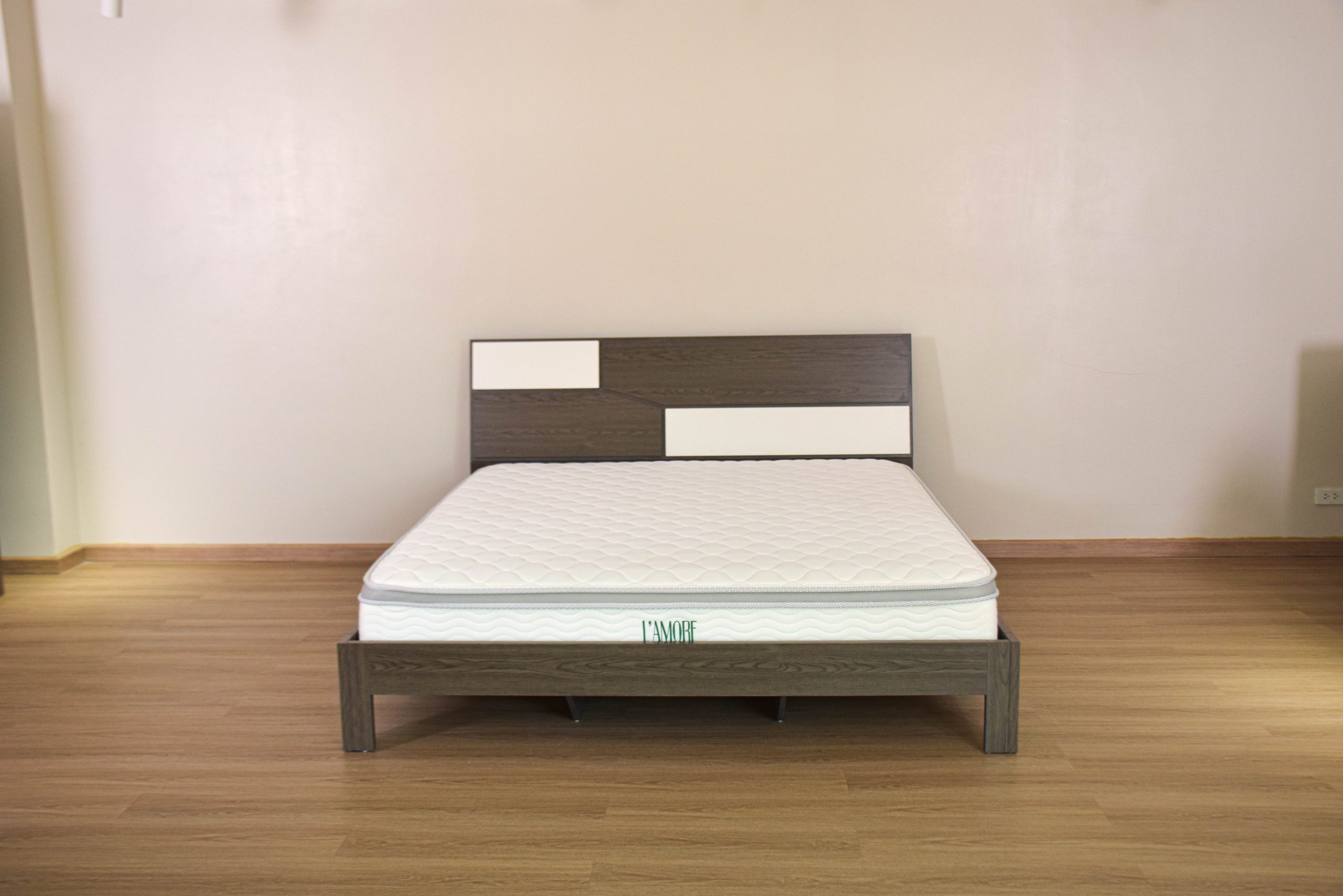 ຕຽງໄມ້ເຮັດຈາກ MDF ມີຄວາມໜາແໜ້ນດີ ປິດດ້ວຍຜິວເມລາມິນລາຍໄມ້ສວຍງາມ ມີຂາແກນກາງຮັບນ້ຳໜັກໄດ້ດີ ມີ 2 ຂະໜາດໃຫ້ເລືອກ ຂະໜາດ 6ຟຸດ ເໝາະກັບເສື່ອນອນຂະໜາດ 180*200 ສູງ 20-30ຊມ ຂະໜາດ 5 ຟຸດ ເໝາະກັບເສື່ອນອນ 150*200 ສູງ 20-30ຊມ