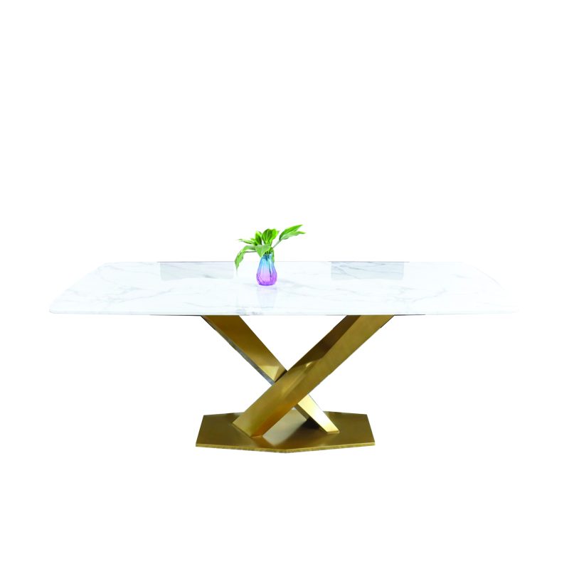 ທ໊ອບໜ້າຫີນອ່ອນສັງເຄາະທົນຄວາມຮ້ອນ, ກັນນ້ຳ ແລະ ດູແລຮັກສາງ່າຍດີໄຊນ໌ມີຄວາມຫຼູຫຼາ ລວດລາຍເບິ່ງເປັນທຳມະຊາດ; ໂດດເດັ່ນແລະຫຼູຫຼາດ້ວຍໜ້າໂຕະທີ່ຖືກອອກແບບຊົງຫຼ່ຽມປາຍມົນ ເຂົ້າກັບຖານຂາໄຂວ່ທີ່ເປັນໂລຫະຄຸນະພາບດີ ເບິ່ງແລ້ວມີພູມຖານຊ່ວຍເຕີມເຕັມຫ້ອງຮັບປະທານອາຫານແກ່ບ້ານທ່ານມີຄວາມອົບອຸ່ນ ຫຼູຫຼາແບບມີລະດັບຂຶ້ນ