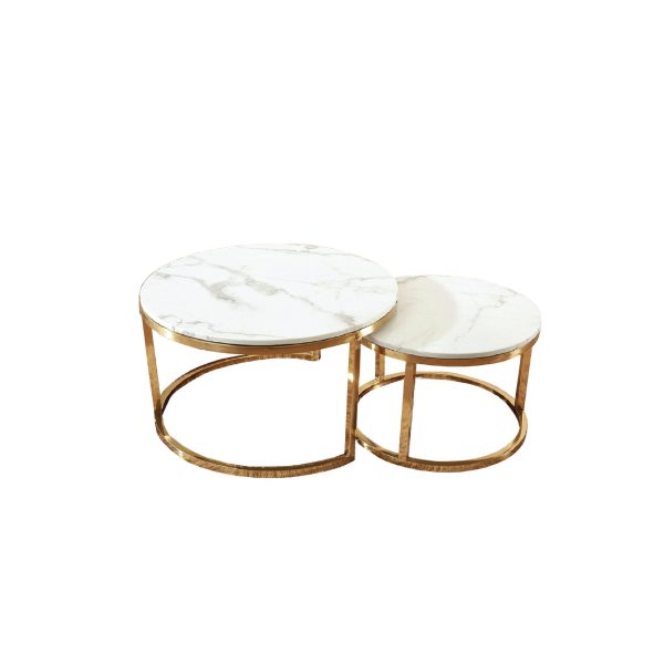 Coffee table ເຊັດຄູ່ໜ້າຫີນອ່ອນສະໄຕລ໌ Luxury ຊ່ວຍໃຫ້ຫ້ອງຮັບແຂກຂອງທ່ານມີຄວາມຫຼູຫຼາສະຫງ່າງາມຂຶ້ນອີກລະດັບ, ສ່ວນຂອບໂຕະແລະຖານເຮັດຈາກໂລຫະຄຸນນະພາບດີຜ່ານການເຄືອບກັນສະໜິມຢ່າງດີ ໜ້າໂຕະເຮັດຈາກຫິນອ່ອນສັງເຄາະຫຼູຫຼາເປັນທຳມະຊາດ. ໃນໜຶ່ງຊຸດປະກອບມີ ໂຕະໜ້າໃຫຍ່ ແລະ ໜ້ານ້ອຍວາງຊ້ອນກັນຫຼືຈັດວາງແຍກກໍໄດ້ ສາມາດຈັດວາງໄດ້ຫຼາຍຮູບແບບຕອບໂຈດການໃຊ້ງານກັບບ້ານຮູບແບບທັນສະໄໝໄດ້ເປັນຢ່າງດີ